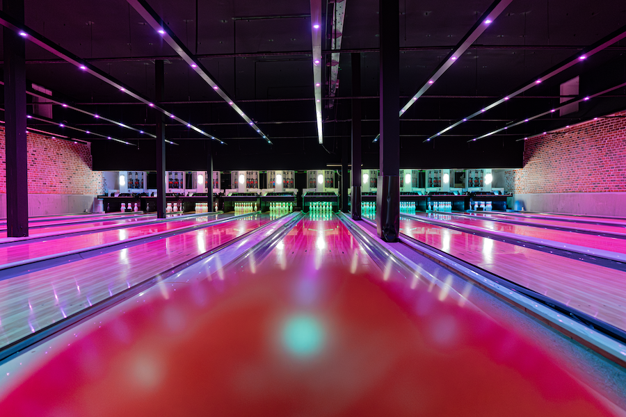 Réalisation des installations électriques du Bowling de Caen avec intégration de l’éclairage, des alimentations des pistes et des équipements audiovisuels dans un environnement recevant du public.
